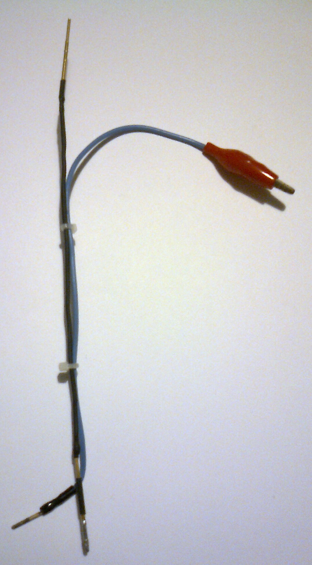Схемно описание: На входа имаме широколентов УВЧ , изпълнен на СВЧ- биполярен транзистор КТ355А . Характерно за този тип елементи е ,че обикновенно притежават доста висок коефициент на усилване по ток. Ориентировъчно съм избрал екземпляр с усилване 100. По - големи стойности може и да увеличат чувствителността,но има голям риск от самовъзбуждане на УВЧ , което е абсолютно нежелателно! Така усиленият от антената сигнал се подава на еднополупериоден детектор изпълнен с диод КД514А . Реално този диод е включен в балансирана мостова схема с друг такъв диод от същия тип /желателно е и двата да са от една и съща производствена партида/.Вторият диод не е детектиращ ,а служи само за температурна компенсация на входа на следващото стъпало, реализирано с ? от ОУ тип LM324N . Интегралната схема има 4 еднакви операционни усилвателя. Работи при еднополярно захранване,но два от четирите усилвателя не се използват реално и тяхните изводи не се свързват никъде. Добрата чувствителност на устройството е резултат от доброто усилване на УВЧ, както и от високият коефициент на усилване по напрежение /детектиран сигнал/ от LM324N . Първата четвърт на ОУ е инвертиращ ,а втората четвърт е неинвертиращ постояннотоков усилвател с променлив коефициент на усилване. Във веригата на обратната отрицателна връзка е свързан измервателният прибор-микроамперметър с чувствителност 250 uA . В изхода на схемата е включен мигащ двуцветен светодиод HL1 червен-зелен цвят . Последователно на него е свързан миниатюрен динамичен високоговорител 16 ома. Мигащият светодиод прави звука чуваем при детектиране на постоянна носеща или такава ,при която само честотата на носещата се променя / FM ; PM ; FSK; PSK ; DECT- protocol и т.н. /. Импулсните модулации от рода и типа на GSM- protocol се чуват доста отчетливо .